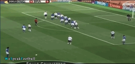 2002年世界杯四分之一决赛,巴西面对英格兰,当场上比分是1-1时,小罗站了出来,他轰入了一脚35米远的惊天任意球。从此,全世界球迷都记住了小罗。
