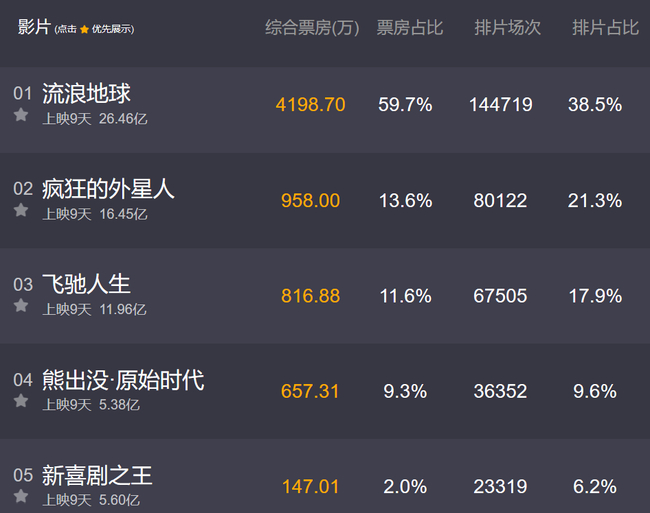 在首日票房2.7亿的良好开局下,《新喜剧之王》的口碑断崖式下滑,排片减少,单日票房被亲子向的《熊出没》都甩开数倍。除了首日就去支持的粉丝,已经没有多少人买账。