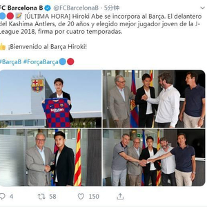 直播吧7月15日讯 巴萨B队通过官推宣布:安部裕葵(Hiroki Abe)加入巴萨。这位来自鹿岛鹿角的前锋今年20岁,是2018年J联赛的最佳年轻球员,他和球队签约4年。欢迎来到巴萨,Hiroki!