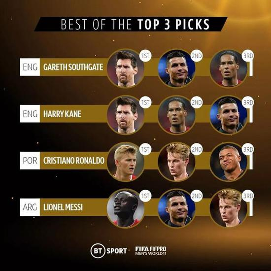 ——部分国家队教练及队长的前三选票——