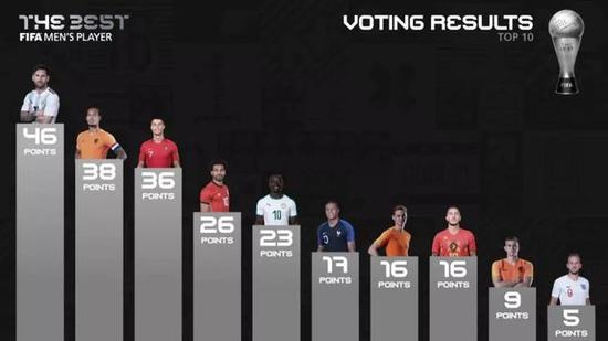 此前,梅西曾5次获得FIFA年度最佳球员,其中2009-2012年更是连续4次当选,今年是梅西生涯第6次获此殊荣,获奖次数位居历史第一。