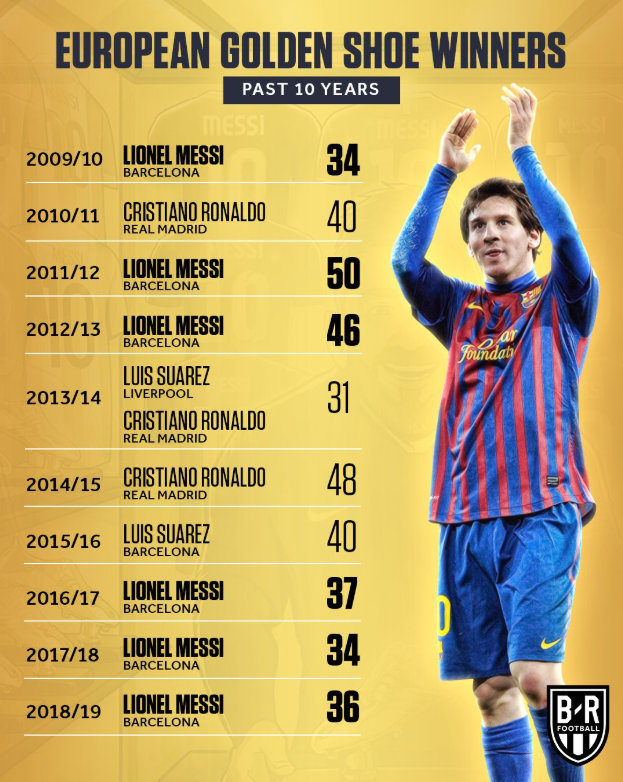 上赛季梅西在西甲打进36球,成功将欧洲金靴收入囊中。这是梅西个人第6次拿到欧洲金靴,也是连续3个赛季获奖,此前5个赛季分别是2009-10、2011-12、2012-13、2016-17、2017-18赛季,他也是历史上拿到该奖项最多的球员。加上这次获奖,梅西的欧洲金靴数已经比C罗多出2个。