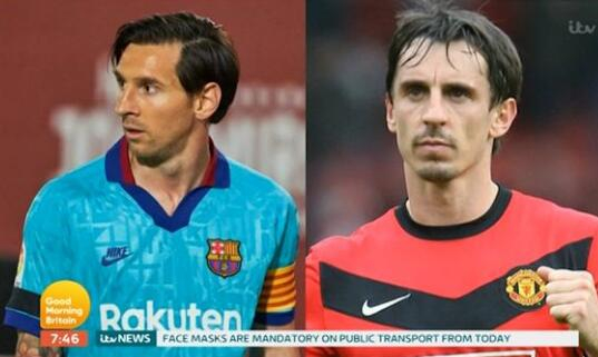 英国主持人皮尔斯-摩根做出了搞笑的对比,他称梅西长得越来越像加里-内维尔。