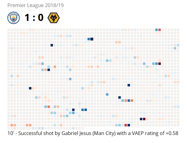 当帕特里西奥扑出曼城的射门,那他的VAEP值也会增加,相对的,射失机会的球员VAEP值会减少。