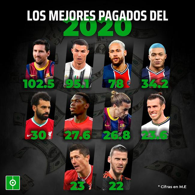 对全球来说,2020年都是困难一年,疫情也影响了足球世界,但这并不意味着所有球员的收入都受到了影响。《福布斯》杂志会定期公布全球收入最高的运动员名单,而足球界2020年收入最高的10位球员名单也被披露,都是我们耳熟能详的球星。