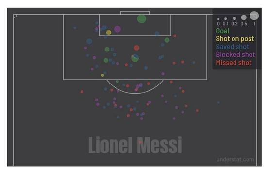 梅西一直都有很多射门机会,但他的资质让他能够打进很多高难度的进球,因此也提高了他的(预期进球)比重。(他遭遇的)犯规数就是其中一个例子。换言之,本赛季他没有找到很多办法取得进球,甚至是直接任意球得分——他在最近20次踢任意球时都没有直接取得进球。