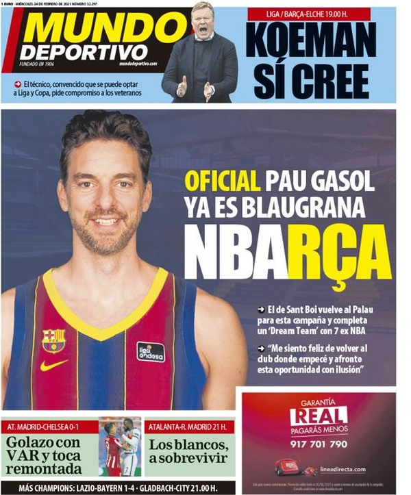 《每日体育报》指出,加索尔肯定不是为了钱加盟巴萨。此前有传言称,加索尔是免费为巴萨打球。不过《每日体育报》透露,根据西甲篮球的规定,26岁以上的球员最低年薪是6.8万欧元,俱乐部至少要给球员这个数。