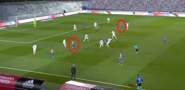 如此一来,巴萨输出进攻威胁的可能性大大降低,反倒是两侧翼卫大幅插上留下的身后空间被皇马利用,能力不堪重用的三后卫只能在大空间下被对手用速度蹂躏: