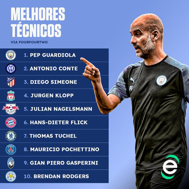 利物浦主帅克洛普第四,莱比锡主帅纳格尔斯曼第五,拜仁主帅弗利克第六。切尔西主帅图赫尔第七。大巴黎主帅波切蒂诺第八。亚特兰大主帅加斯佩里尼第九,莱切斯特主帅罗杰斯第十。穆里尼奥第19位。