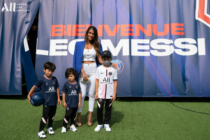 梅西在降落到巴黎后,更换了更适合新鲜场景的T恤,然后是签约仪式,手持30号球衣的亮相,随后还有在埃菲尔铁塔的官宣仪式。