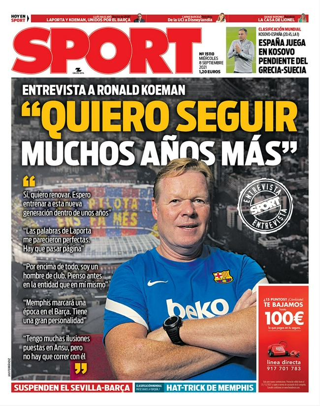 荷兰教练科曼在接受采访时表示,希望再在巴萨执教很多年。