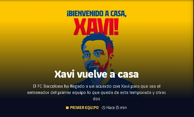 北京时间11月6日上午,巴萨俱乐部官方宣布:哈维担任球队主帅。