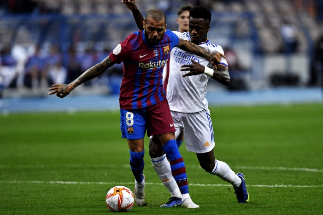 西班牙超级杯半决赛巴萨对阵皇马,随着阿尔维斯的首发出场,一项纪录也就此产生。
