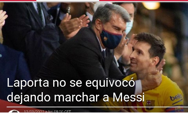 西班牙《每日体育报》的最新评论指出,拉波尔塔放梅西离开,目前来说并没有错。