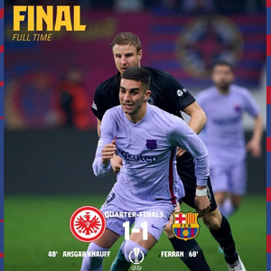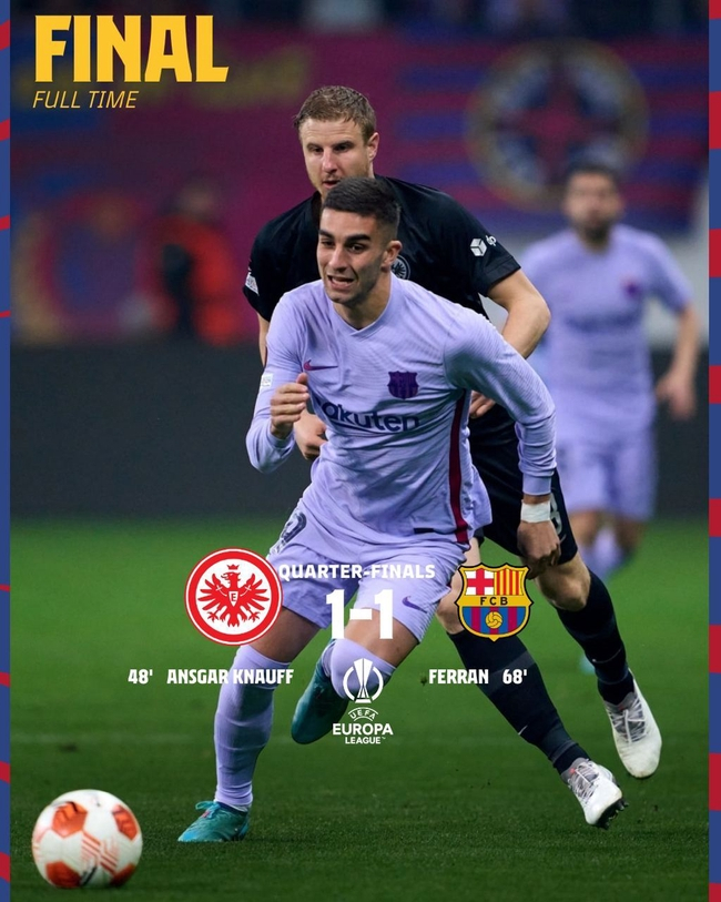 欧联杯1/4决赛,虽然巴萨未能在客场击败法兰克福,但1比1的比分还能接受,毕竟第二回合在诺坎普球场进行。