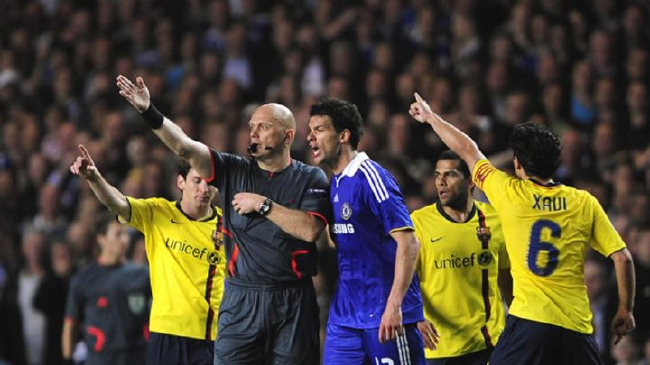 09年执法切尔西巴萨的裁判认错:应该给切尔西点球