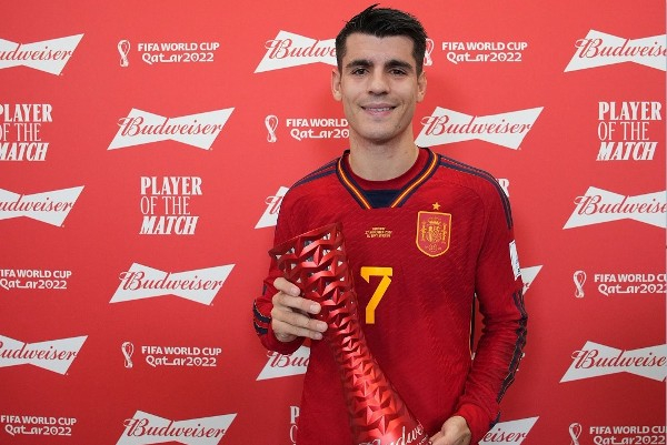 世界杯小组赛E组第二轮,西班牙1比1平德国,比赛中替补登场为西班牙队取得进球的莫拉塔,赛后被世界杯官方评为全场最佳。