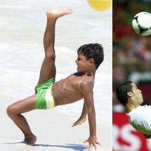 C罗儿子和老爹比射门