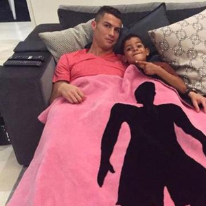 10月19日是世界乳腺癌宣传日,皇马球星C罗则积极投身其中,宣传大家重视乳腺癌。在他最新的一条Instagram上,C罗带着自己的儿子迷你罗,披上了一条粉色的毯子。
