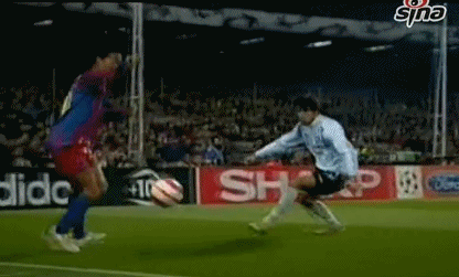 提到牛尾巴过人,就不得不提小罗,这个足球场上的精灵最为出名的过人动作无疑就是牛尾巴过人了。通过右脚的连续触球,来改变足球的运行方向,小罗将之一动作运用的行云流水,欺骗性十足。