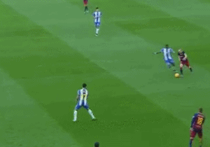 梅西的带球风格表面看起来是依靠他的敏捷和速度,但慢动作细看才知道他浑身都是假动作。他无需华丽的过人动作,那些反而会影响他的速率。有时他一沉肩就能晃开防守,有的时候他只需一个头部动作就能骗到对手。
