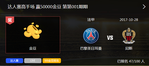 金豆有这么大的作用?!怎么才能赚取更多呢?别着急,今晚竞猜达人已经开启,大巴黎高手场更有50000金豆大礼相赠!你还在等什么?快开启自己的幸运周末吧!点击这里参与竞猜