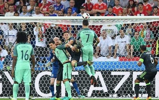 2016欧洲杯半决赛,C罗再次打进一粒匪夷所思的头球,第49分钟,格雷罗左路传中,C罗霸气弹跳滞空头球首开纪录。此球C罗在空中悬停了0.7秒,堪称壮举!赛季各大名宿均盛赞C罗!阿森纳名宿马丁-基翁则表示:“C罗这粒进球,更像是一名篮球运动员在扣篮。”