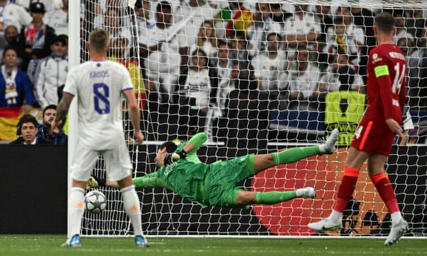 阿诺德禁区右侧低传,萨拉赫小禁区边缘扫射被库尔图瓦救出。随后马内回敲,萨拉赫禁区边缘抽射被库尔图瓦救下。蒂亚戈传球,马内突入禁区边缘内劲射被库尔图瓦扑挡后打中左侧立柱弹回。第43分钟,本泽马回敲被挡出,巴尔韦德禁区内抢断,本泽马近距离破门被判越位在先,进球无效。