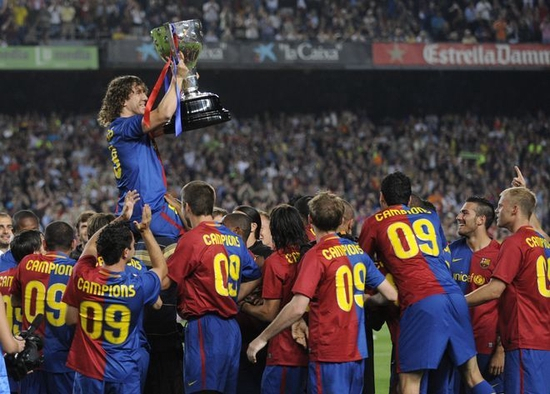 2009年,巴萨拿到了国王杯、西甲、欧冠、西班牙超级杯、欧洲超级杯、世俱杯。