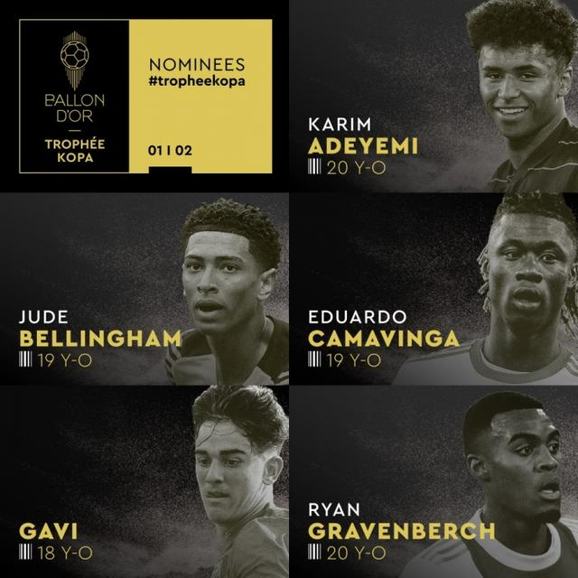 周五,《法国足球》除了公布了2022年金球奖的30人名单,还公布了科帕奖的10人名单。