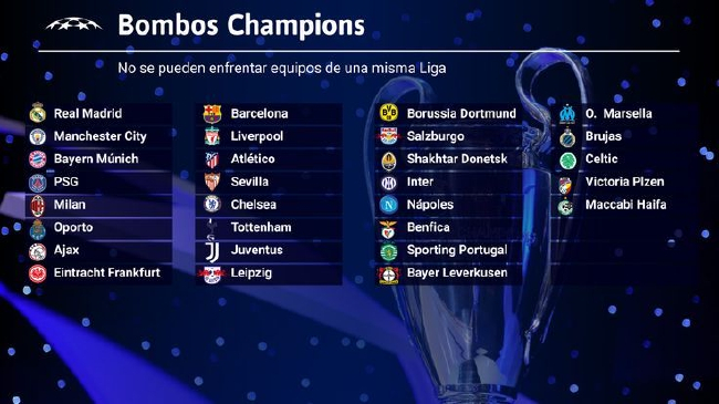 根据欧足联的规则,皇马、曼城、拜仁、巴黎、AC米兰、波尔图、阿贾克斯、法兰克福被列为种子队,他们是欧冠、欧联杯冠军,或者是排名靠前的联赛的冠军。