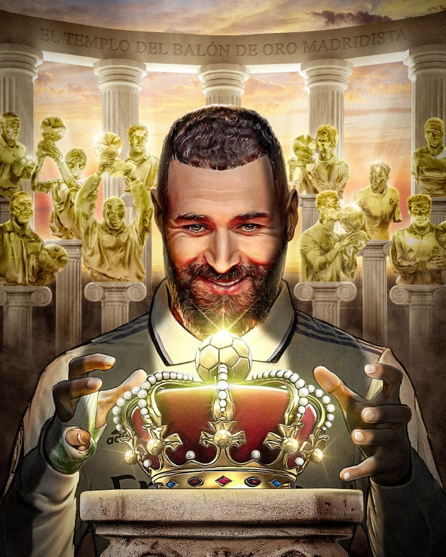 2022年金球奖,皇马前锋本泽马获得奖杯。皇马官方晒出了海报,祝贺本泽马获得金球奖。