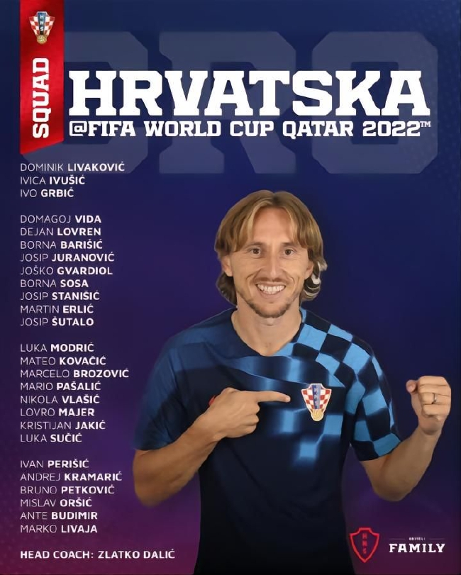 11月9日,克罗地亚国家队公布了参加世界杯的26人名单,皇马老将莫德里奇领衔,科瓦契奇、洛夫伦、布罗佐维奇、佩里西奇等名将在列。还包括曾在中超长春亚泰效力过的奥尔西奇。