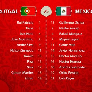 葡萄牙此前4战墨西哥取得2胜2平保持不败,C罗提前离队缺阵本场比赛,葡萄牙轮换8人,佩佩解禁复出。