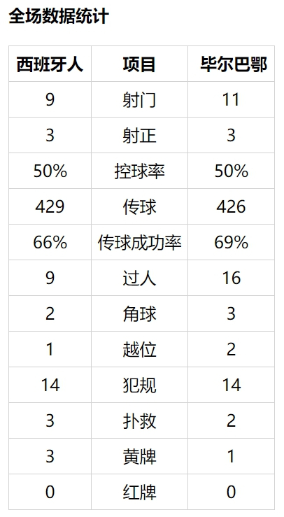 整个上半时西班牙人2次射正,但威胁有限,而毕尔巴鄂1次射正就破门。下半时,卡帕右路传球,伊尼亚基-威廉姆斯小角度低射被迭戈-洛佩斯得到。