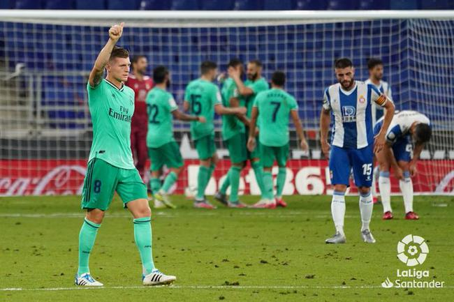 此后皇马放缓节奏开始控制,西班牙人的反攻缺乏足够威胁。皇马夺得5连胜后超出巴萨2分继续领跑,而西班牙人4轮不胜后继续垫底。