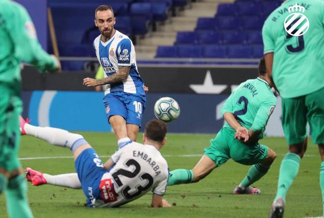 北京时间6月29日04:00(西班牙当地时间28日21:00),2019/20赛季西甲第32轮一场焦点战在科尔内拉-埃普拉特球场展开争夺,皇家马德里客场1比0力克西班牙人,武磊首发出战,本泽马助攻卡塞米罗进球。皇马5连胜后继续领跑,西班牙人4轮不胜继续垫底。
