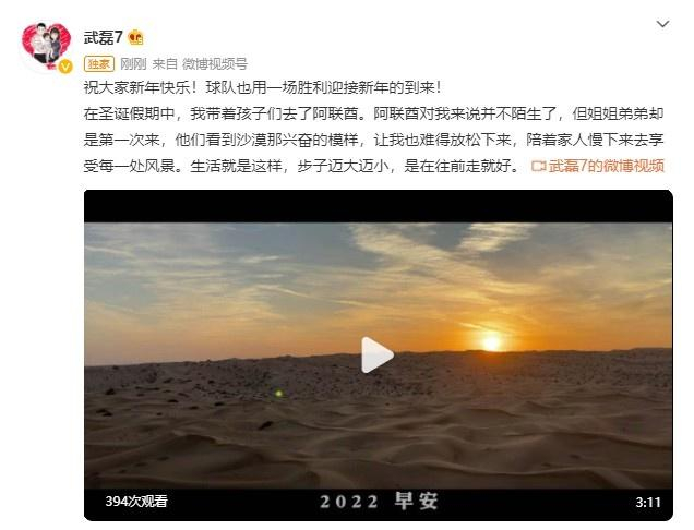 圣诞-新年期间,武磊和家人来到了阿联酋,享受了难得的阳光和温暖之后,他在社交媒体上写下了这样一句话:“生活就是这样,步子迈大迈小,是在往前走就好。”