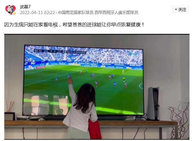 赛后武磊晒出女儿在电视机前观看自己进球的画面……都懂,孩子和家人,是一个男人在低谷中咬牙坚持的最大动力。