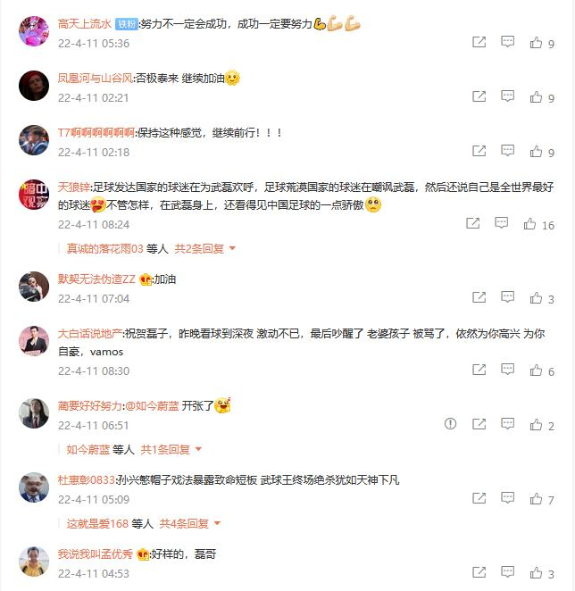 在武磊进球后,微博平台上的声音,以支持为主,而且是压倒性的。