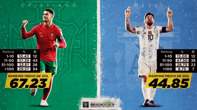 不过需要指出的是,这个统计中的球队排名,是目前的排名,不是两人打进各球时对手对应的排名,因此统计上稍微有点不准确。但国家队成绩相对稳定,还是很能反映问题。