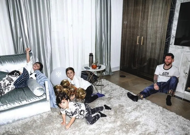 其中包括梅西与他个人生涯七座金球的合影,还有与妻子安东内拉及三个儿子蒂亚戈、马特奥、Ciro与金球奖杯合影,家人与金球相伴,梅西看起来是满满的人生赢家状态。