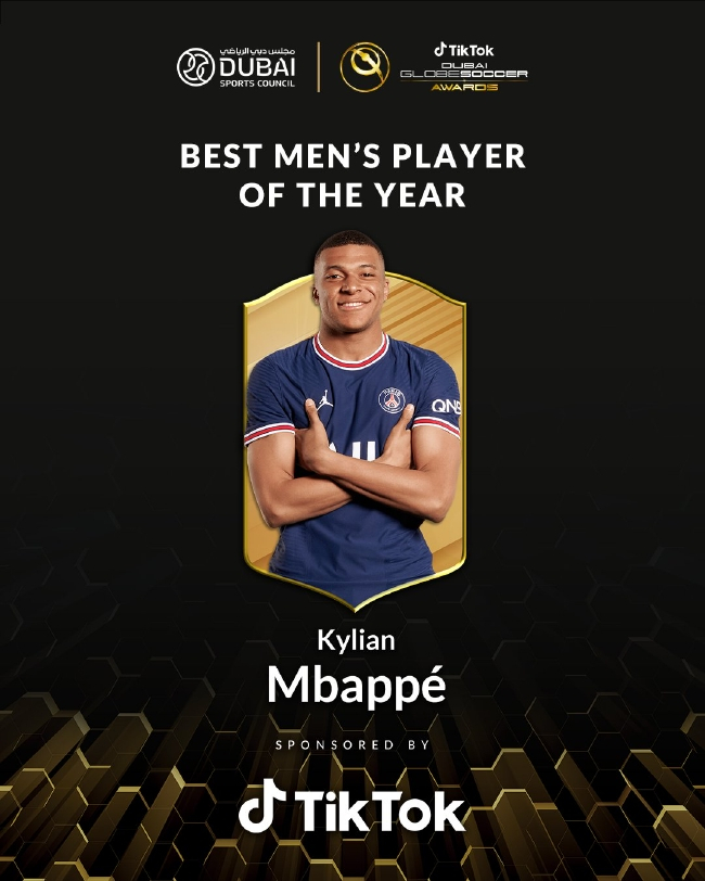 北京时间12月28日消息,2021年度环球足球奖公布最佳男足球员得主,姆巴佩生涯首次当选。