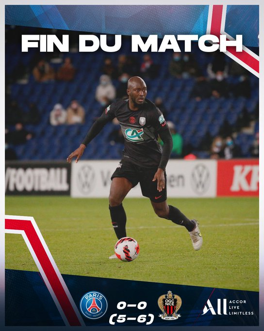 法国杯-帕雷德斯失点 巴黎点球战负尼斯无缘八强
