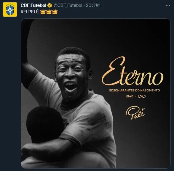 贝利官方推特账号也更新推文,证实了贝利确已去世。贝利推特账号写道:“球王贝利已于今天安详地离世,他的人生旅程因灵感与爱所被人铭记。”