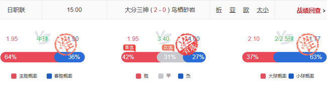 随着五大联赛为代表的欧洲主流联赛纷纷进入尾声,日职联赛事的热度愈发高涨。昨日小炮日职联的有效预测中,拿到了14中12的出色战绩!赛果方面首选命中了湘南海洋的3.50平局,大阪钢巴的3.40平局,札幌的2.30主胜以及大分三神的1.95主胜,可谓是含金量十足!