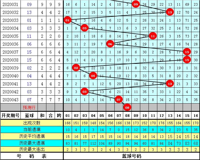 在历年同期开奖中,蓝球大号尾数开出了12个,出现比例非常高,今年同期预计再次开出大号尾数蓝球,关注蓝球号码:08。