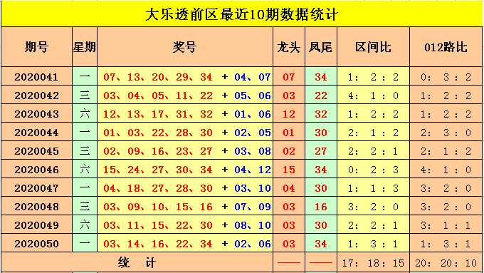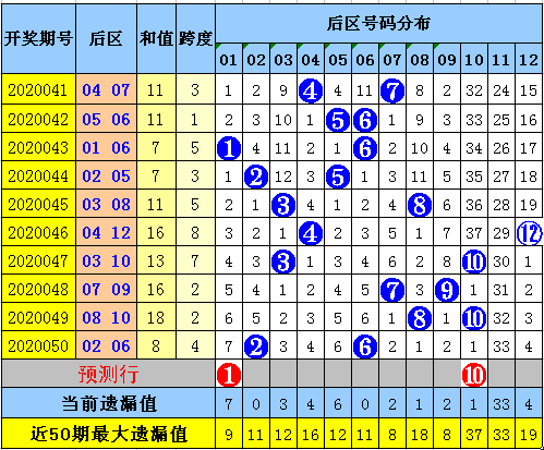 后区推荐(5码):01、04、08、10、12