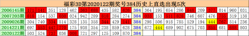 福彩3D第2020122期开出奖号384,试机号109。