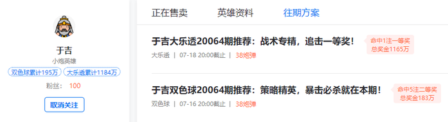 小炮英雄又爆啦!大乐透第20064期开奖,小炮英雄“于吉”预测命中头奖1165万!更令人震惊的是,他的第一、二、三、四档方案全部命中!